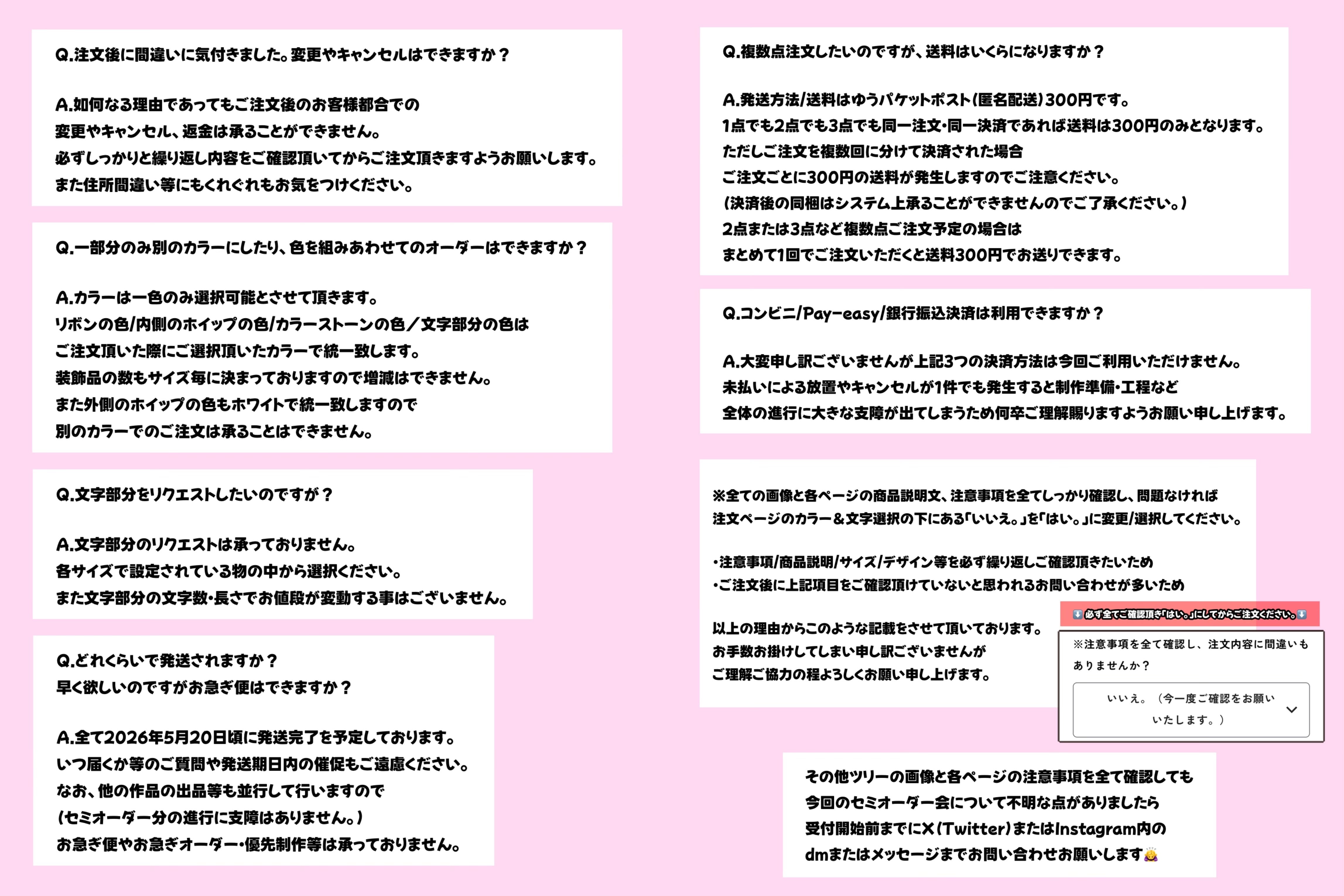 発送までの間、他作品の出品等も並行して行うため、お急ぎ便・お急ぎオーダー・優先制作は承れません。